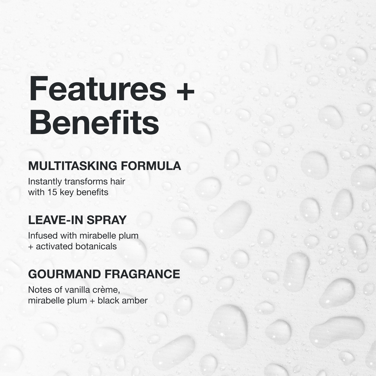 Instantly improved hair structure and much more! This spray combines a total of 15 benefits for the hair. Enriched with mirabelle plum seed oil and activated plant substances.